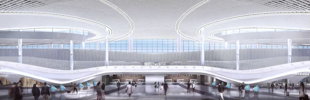 航站樓的設(shè)計(jì)理念汲取當(dāng)?shù)厣詈竦娜寮椅幕?,與獨(dú)有的運(yùn)河文化航站樓屋面造型初見,如璞玉般明潤和諧,又如祥云般蒸騰而升。項(xiàng)目從“祥云璞玉”的儒圣精神著手,暗合“君子如玉”的儒家精神,屋檐走勢(shì)如水,波浪起伏,象征著運(yùn)河文化帶來的流暢與鮮活,將古建筑“重檐屋頂、斗拱、柱列”的特點(diǎn),與現(xiàn)代機(jī)場建設(shè)相結(jié)合,典雅溫潤,渾然天成。室內(nèi)以“大成飛檐、河映孔孟”為主題,氛圍儒雅詩意,吊頂順應(yīng)天窗形式,展現(xiàn)出運(yùn)河融南匯北的壯美畫卷,運(yùn)河之都,名副其實(shí),打造濟(jì)寧獨(dú)特的儒家文化名片。