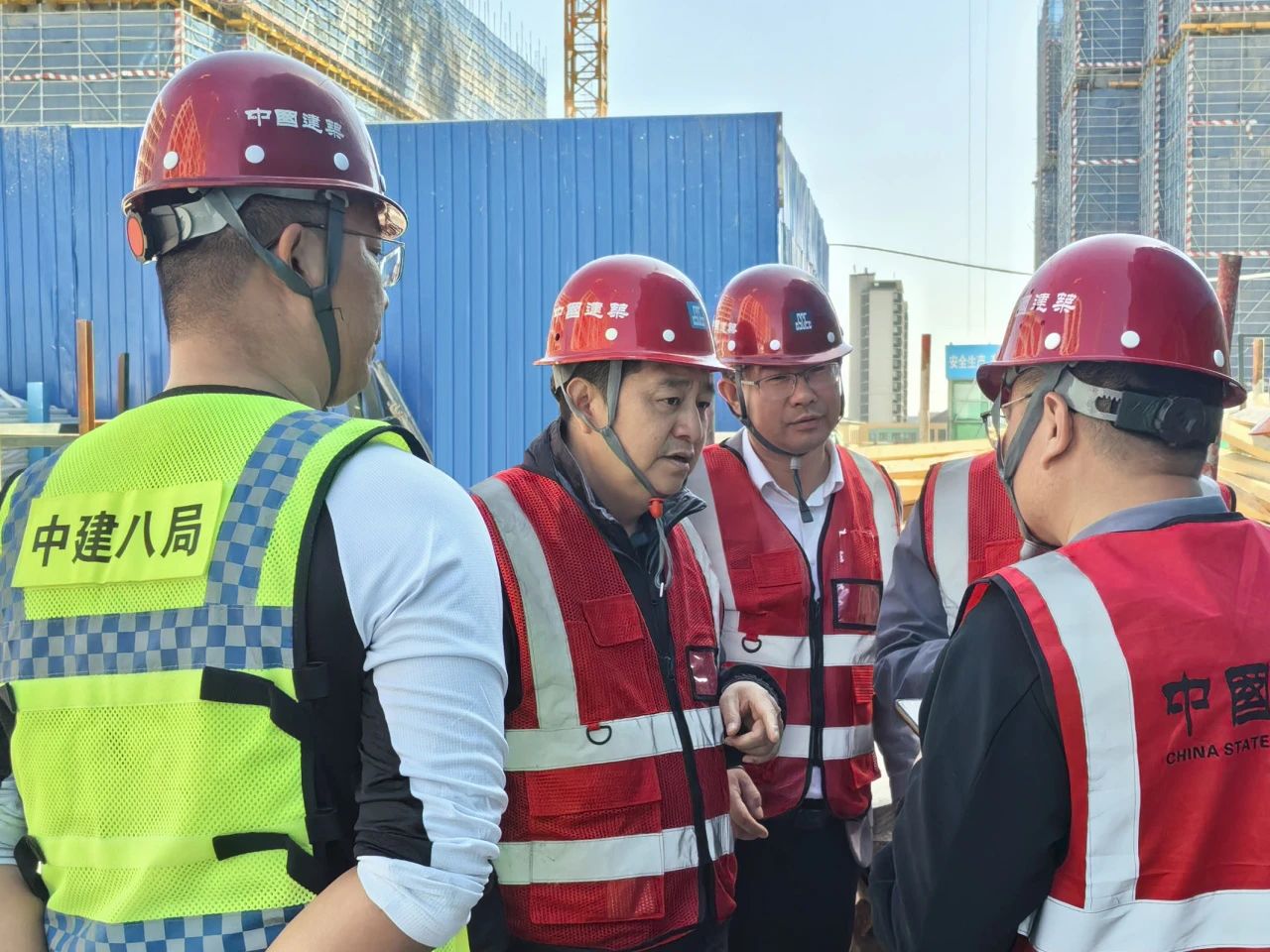 4月5日,中建八局一公司黨委副書記、總經理?;瘧椄皾蠂由絉04地塊房地產開發(fā)項目開展“四不兩直”安全帶班檢查,公司副總經理李云參加檢查。