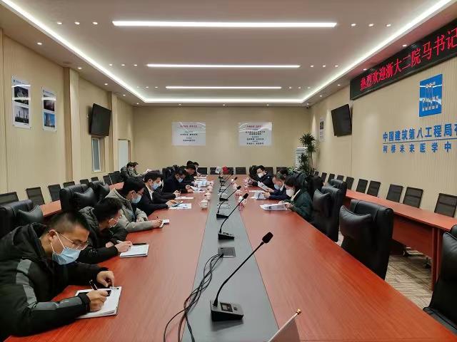 1月4日,浙江大學(xué)醫(yī)學(xué)院附屬第二醫(yī)院黨委副書記馬岳峰到紹興市柯橋未來醫(yī)學(xué)中心項目調(diào)研指導(dǎo),項目經(jīng)理黃羽、總工朱奇、生產(chǎn)經(jīng)理張野等人全程參會。