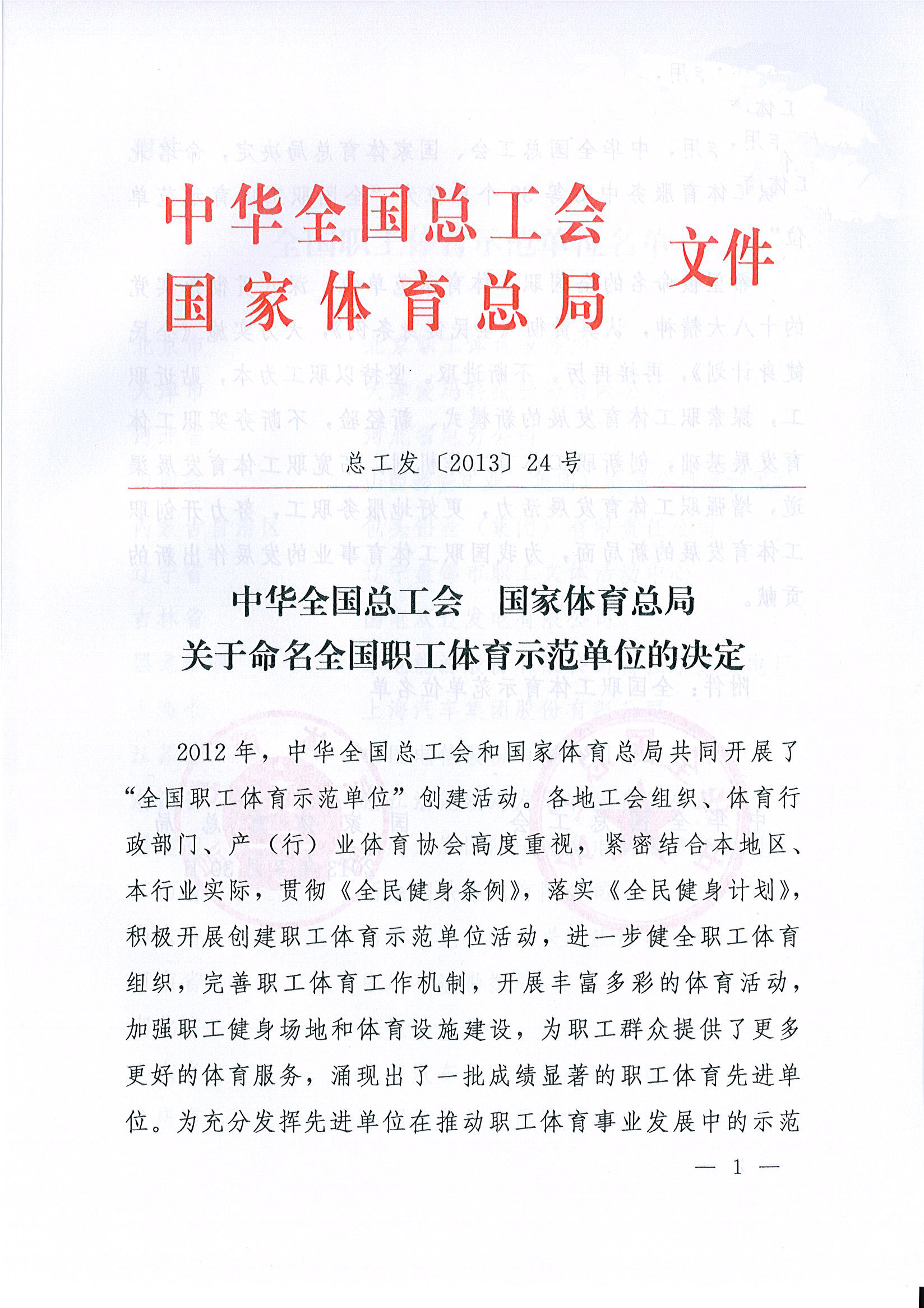公司榮獲“全國職工體育示范單位”榮譽稱號