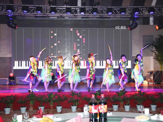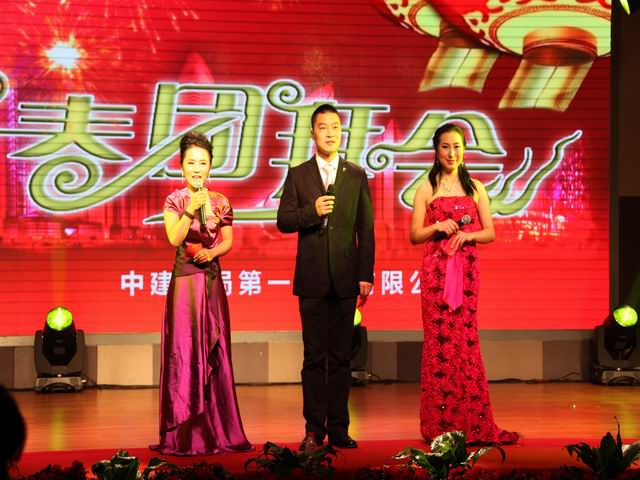 團拜會演出在富有激情的舞蹈《南非風情》中拉開了帷幕。整臺演出精彩紛呈,高潮迭起。員工自編自演的各類節(jié)目豐富多彩,幸運大抽獎更是讓員工驚喜連連,演出現(xiàn)場歡聲笑語不斷。相聲《咱公司的那點事》、小品《牛郎與織女》、啞劇《候車室的故事》讓現(xiàn)場觀眾笑成一片;歌曲《相親相愛》唱出了一公司員工團結互助是一家人的心聲;歌伴舞《荷塘月色》在現(xiàn)場燈光和舞臺的配合下,為大家呈現(xiàn)了一幅唯美的畫面;別具風格的三句半《公司喜事多》,讓大家過了一把情景劇版三句半隱;情景詩朗誦《閃亮的日子 閃亮的青春》則為大家講述了一群年輕人到工地后半年的切身感受;歌手楊坤的《無所謂》被演員模仿的惟妙惟肖,足以以假亂真;舞蹈串燒《青春旋律》讓大家感受到了公司年輕人的青春活力;小品《施工情》講述了公司員工舍小家顧大家、令行禁止、使命必達的精神,得到了現(xiàn)場觀眾的共鳴。演出在氣勢磅礴的《走向復興》中圓滿落幕,出席團拜會的領導同志走上舞臺,同全體演員合影留念。