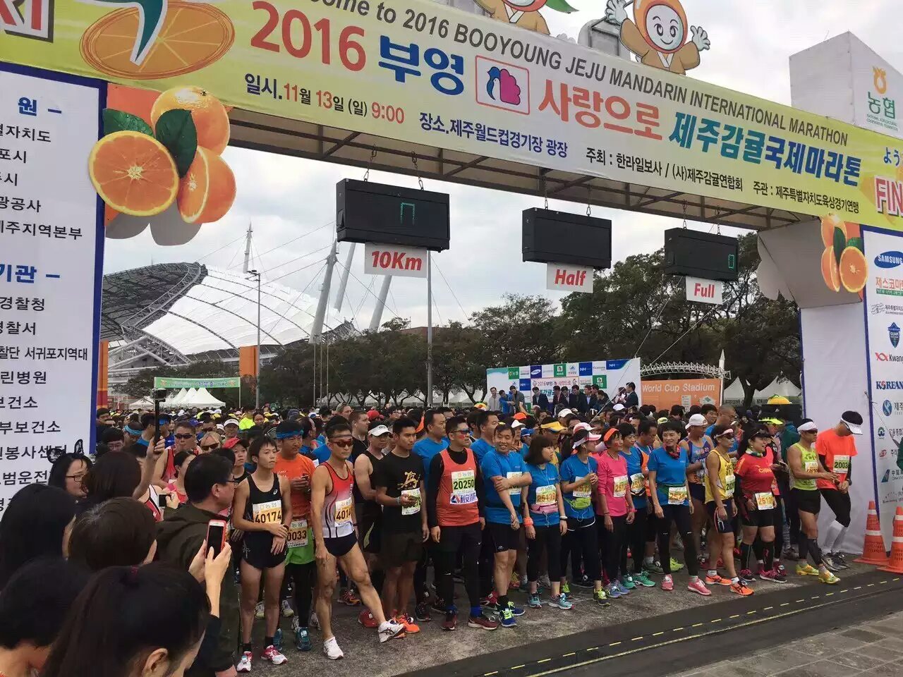 當(dāng)?shù)貢r間11月13日,第十四屆濟州柑橘國際馬拉松大賽在濟州島西歸浦市順利拉開帷幕,在碧海藍(lán)天與柑橘密林之間,來自世界各地的6000多名運動員盡情享受著這全世界唯一以水果命名的馬拉賽事。本屆比賽由漢拿日報社與濟州柑橘聯(lián)合會主辦,人民網(wǎng)、南方航空等單位協(xié)辦,韓國濟州夢想大廈新建工程項目的員工們,也受邀參加了此次活動。