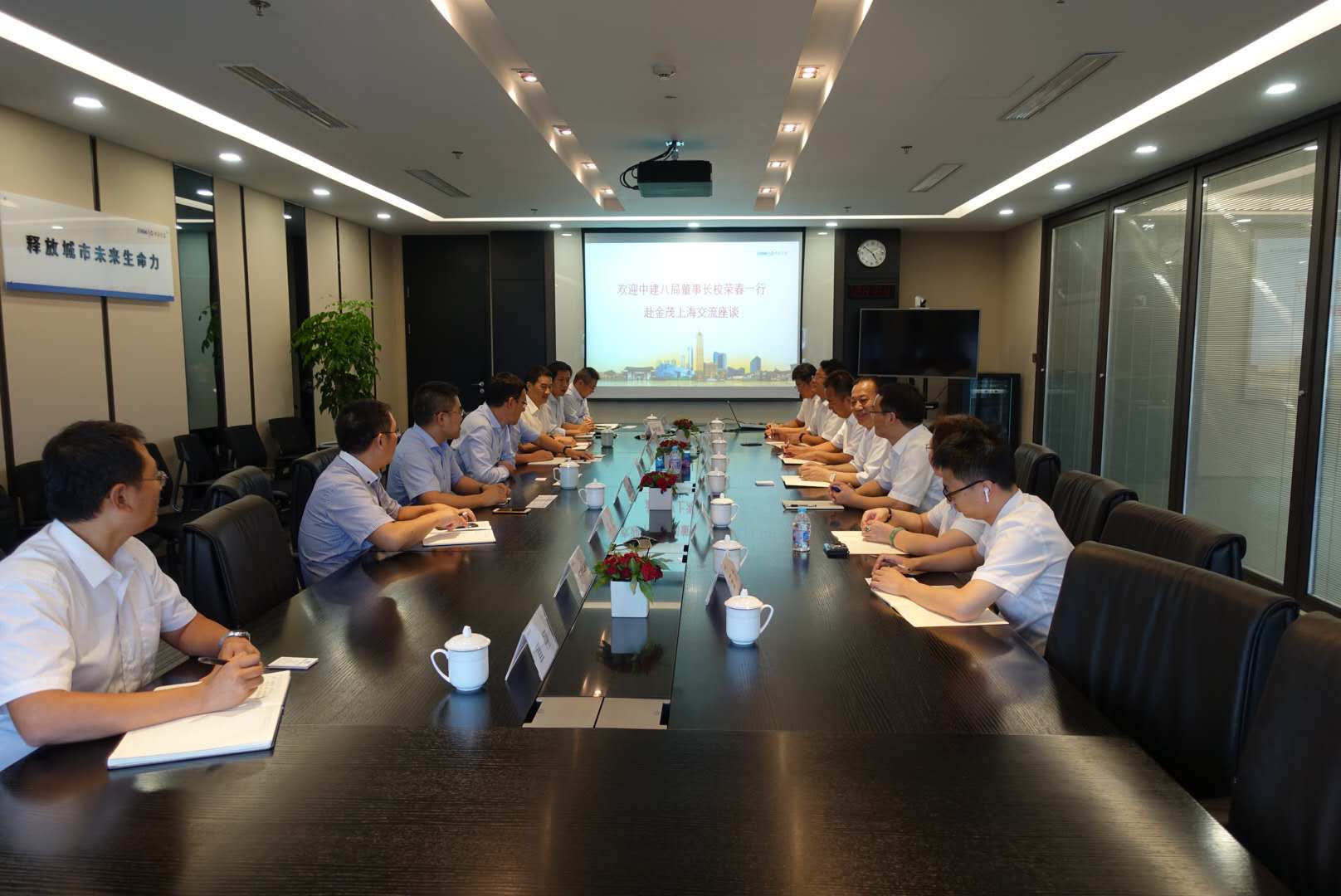 中建八局黨委書記、董事長校榮春一行拜訪中國金茂上海公司