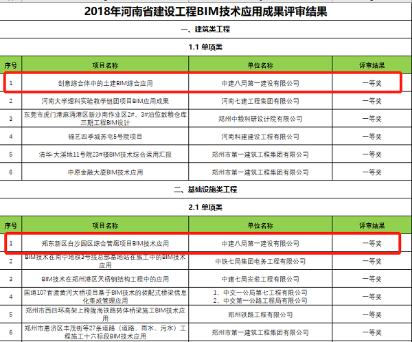由河南省建筑業(yè)協(xié)會主辦的2018年河南省建設(shè)工程BIM技術(shù)應(yīng)用成果評審結(jié)果出爐,中部國際、白沙管廊項(xiàng)目分獲建筑類工程、基礎(chǔ)設(shè)施類工程單項(xiàng)類一等獎第一名。