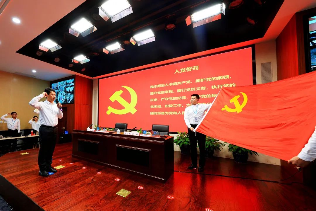 會(huì)議在雄壯的國(guó)歌聲中開始,齊朋帶領(lǐng)全體黨員重溫入黨誓詞,牢記黨的初心和使命。