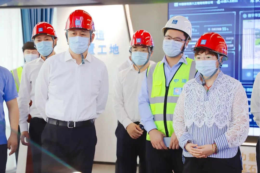調(diào)研座談會(huì)上,中建集團(tuán)智慧工地課題組成員介紹了集團(tuán)智慧工地標(biāo)準(zhǔn)體系,項(xiàng)目負(fù)責(zé)人匯報(bào)了項(xiàng)目信息化、智慧工地應(yīng)用等方面的創(chuàng)新舉措和工作成效。期間,與會(huì)人員參觀了項(xiàng)目5G智慧展廳,實(shí)地調(diào)研了項(xiàng)目建設(shè)情況,并從城市信息模型(CIM)、電子化證照實(shí)施、項(xiàng)目監(jiān)管的串聯(lián)及服務(wù)商信用考核評(píng)價(jià)等方面展開(kāi)深入交流。