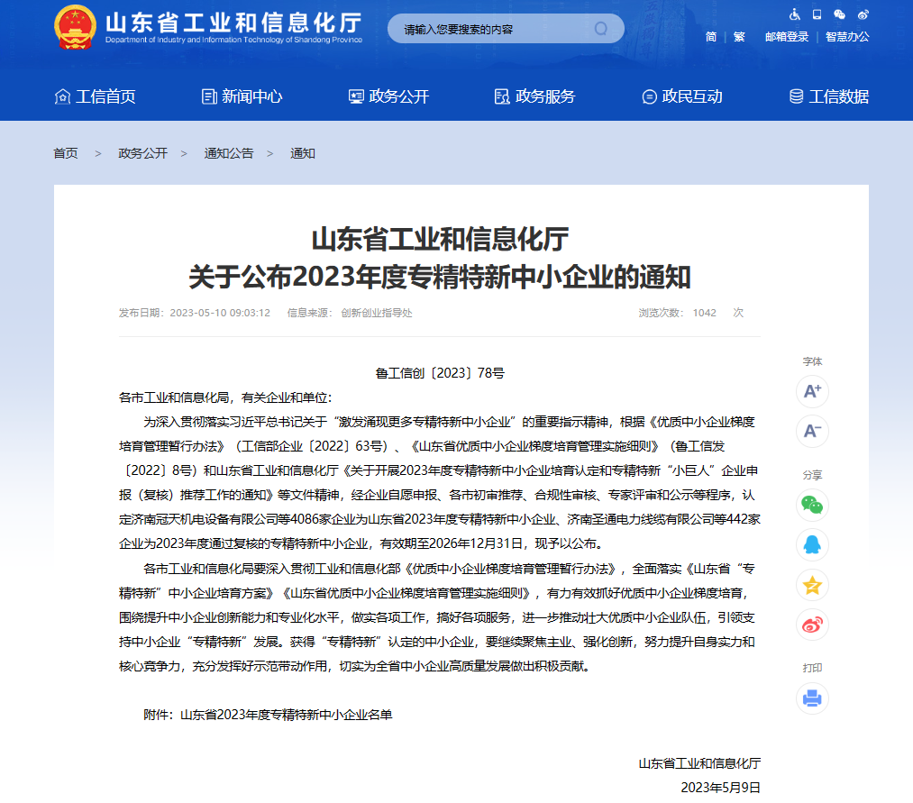 中建八局一公司旗下中建科技(濟南)有限公司榮獲山東省“專精特新”中小企業(yè)認定