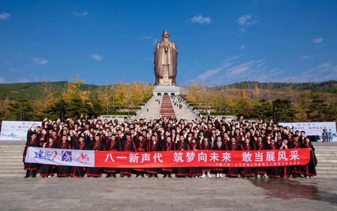 中建八一濟(jì)南公司、海外公司、數(shù)字科技公司、設(shè)計(jì)研究院100余名簽約師徒走進(jìn)曲阜尼山圣境賡續(xù)鐵軍精神,傳承師道匠心,在金聲玉振廣場前,從敬拜恩師到誦讀經(jīng)典明志、從獻(xiàn)束脩禮到向?qū)煼畈?,傳承先賢文化,體味匠心之美,拜師禮成后,師徒們前往大學(xué)堂參觀研學(xué)開展徒步、趣味運(yùn)動(dòng)。
