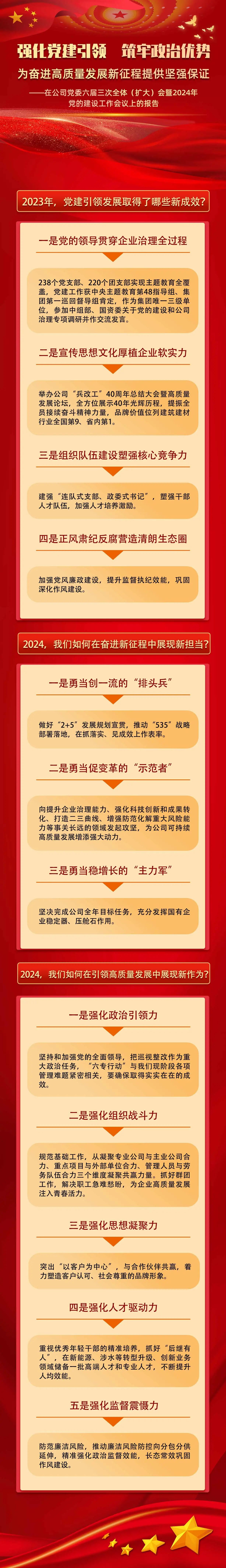 在公司黨委六屆三次全體(擴(kuò)大)會(huì)暨2024年黨的建設(shè)工作會(huì)議上,齊朋作題為《強(qiáng)化黨建引領(lǐng) 筑牢政治優(yōu)勢(shì) 為奮進(jìn)高質(zhì)量發(fā)展新征程提供堅(jiān)強(qiáng)保證》的報(bào)告。