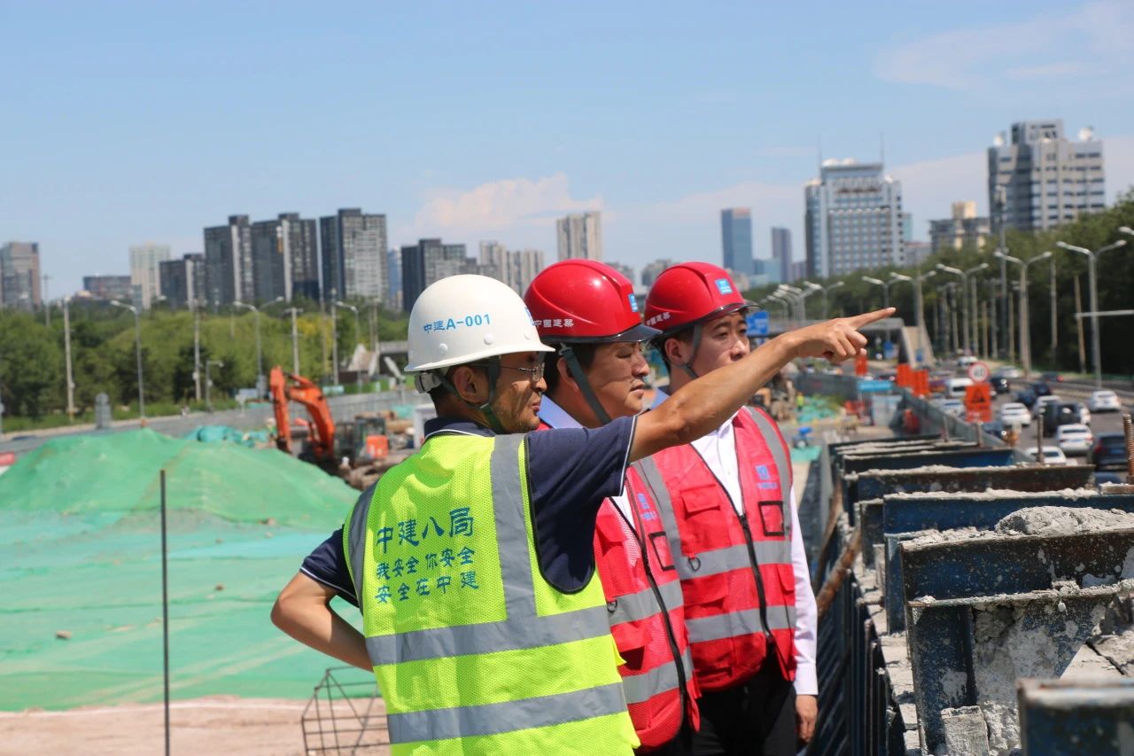 6月25日,中建八局一公司黨委副書記、總經(jīng)理?;瘧椀奖本┮覉@北街道路工程1#標(biāo)段開展“四不兩直”安全帶班檢查。