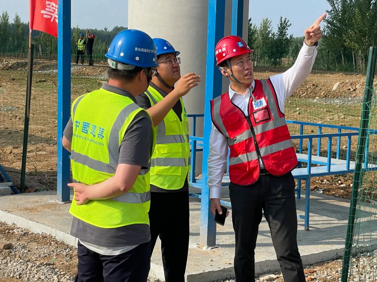 7月4日,中建八局一公司黨委書記、董事長齊朋到京臺高速齊河至濟南段改擴建項目開展“四不兩直”安全帶班檢查。