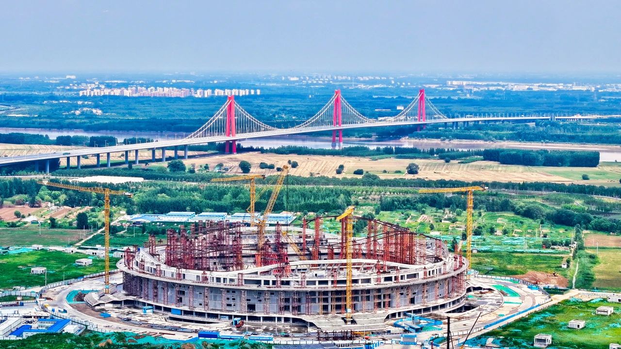 黃河體育中心專業(yè)足球場(chǎng)項(xiàng)目位于濟(jì)南新舊動(dòng)能轉(zhuǎn)換起步區(qū),總建筑面積19.7萬平方米,采用世界杯FIFA最新標(biāo)準(zhǔn),是山東省首個(gè)6萬座專業(yè)足球場(chǎng),黃河流域生態(tài)保護(hù)與高質(zhì)量發(fā)展戰(zhàn)略重大工程。目前,項(xiàng)目處于屋蓋鋼結(jié)構(gòu)施工階段,預(yù)計(jì)在2024年底完成合龍。