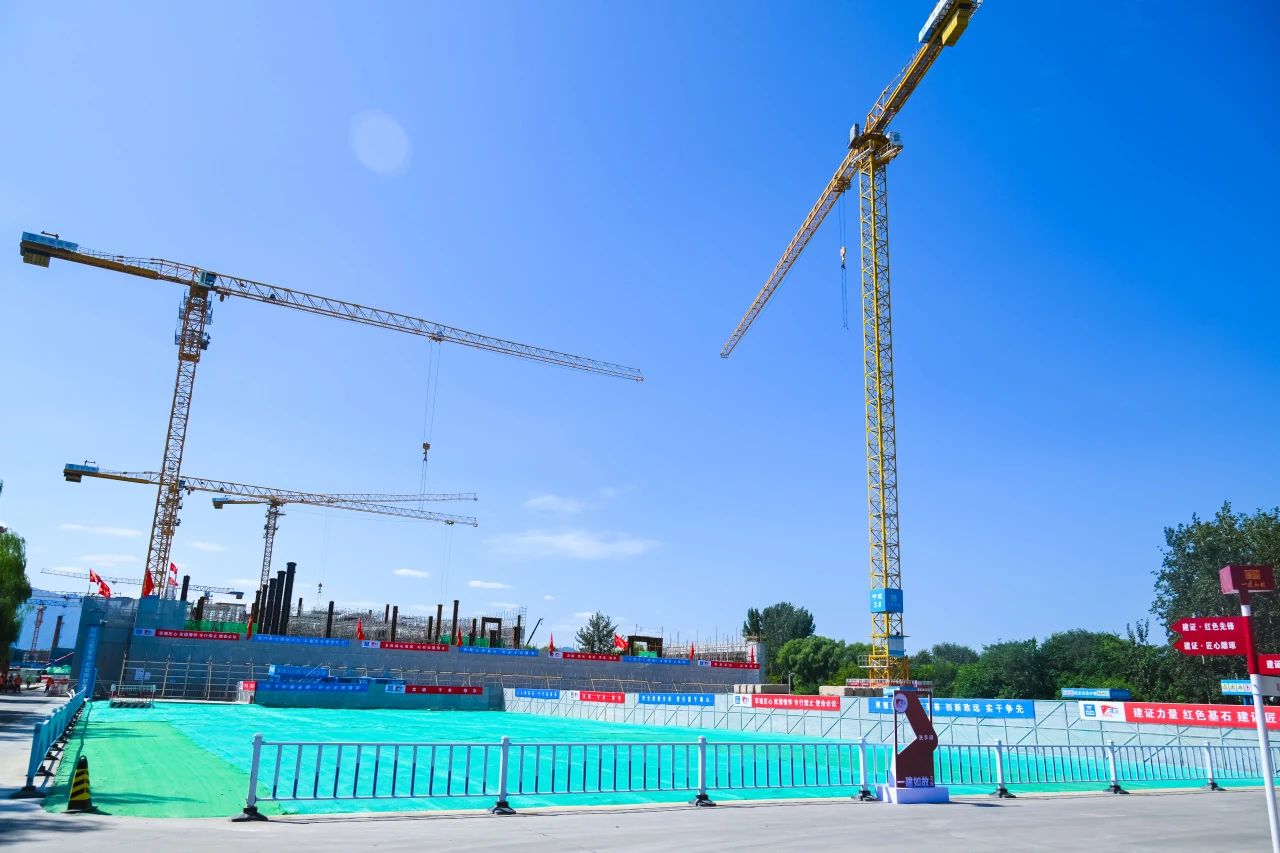項目充分發(fā)揮黨支部的戰(zhàn)斗堡壘作用和黨員的先鋒模范作用,自2023年12月22日開工以來,先后完成基坑支護、13萬方土方開挖、1400根工程樁施工、首段筏板澆筑、鋼結構首吊、正負零等重要節(jié)點,切實將黨建工作融入生產經營。目前,500余名建設者正在進行主體結構施工,計劃今年年底完成封頂。