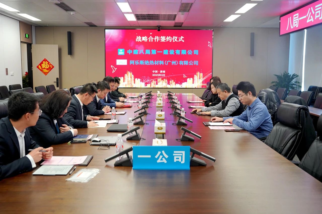 2月13日,中建八局一公司與阿樂斯絕熱材料(廣州)有限公司舉行戰(zhàn)略合作簽約儀式,阿樂斯中國區(qū)技術(shù)銷售總監(jiān)沙建華及相關(guān)負(fù)責(zé)人;中建八局一公司副總經(jīng)理、總工程師谷力,工程研究院、綠色建筑發(fā)展公司相關(guān)負(fù)責(zé)人參加簽約儀式。