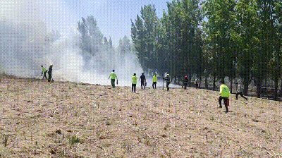 項目救火隊到達(dá)火場時,當(dāng)?shù)叵狸犚惨呀?jīng)抵達(dá),此時的火情現(xiàn)場濃煙蔽空,刺鼻的焦糊味裹挾著熱浪撲面而來,柳絮燃燒形成的火焰借著風(fēng)勢,沿著干枯植被與低矮灌木叢擴(kuò)張,極有可能蔓延至兩邊的村莊與農(nóng)田。