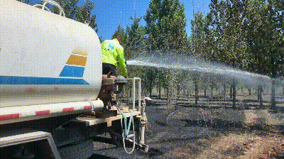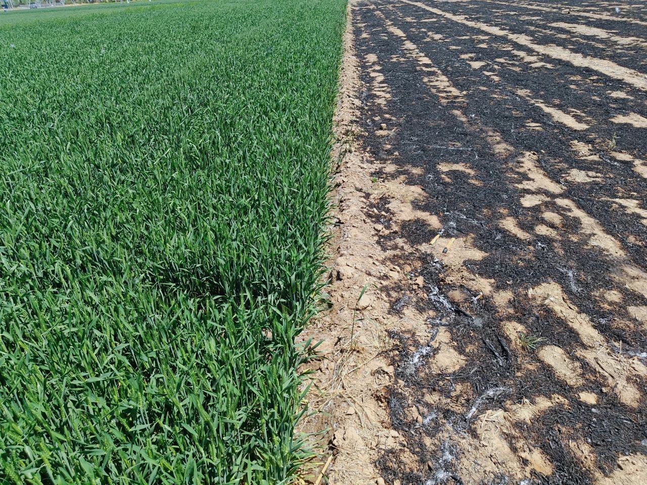 大家按照預(yù)案快速分成三組,與屬地消防隊開始聯(lián)合行動,一組隊員手持干粉滅火器,以扇形戰(zhàn)術(shù)向火場核心推進(jìn),撲滅點狀火源;二組隊員駕駛灑水車構(gòu)建“水幕墻”,截斷火勢蔓延的路徑,并為當(dāng)?shù)叵儡囇a(bǔ)充水源;三組隊員揮動斧頭鐵鍬,在火場外圍緊急開辟防火隔離帶,嚴(yán)防飛火復(fù)燃。隨著項目與當(dāng)?shù)叵狸爢T的通力協(xié)作,1小時后現(xiàn)場明火已經(jīng)基本撲滅,此時火場與麥田僅僅一線之隔。