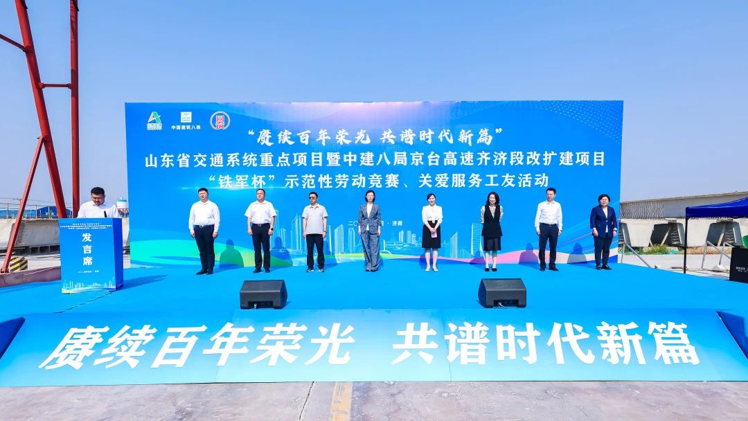 開啟夏日攻堅,建功交通強國。5月27日,山東省交通系統(tǒng)重點項目暨中建八局“鐵軍杯”示范性勞動競賽、關(guān)愛服務(wù)工友活動在中建八局承建的京臺高速齊濟段改擴建項目正式啟動吹響履約奮進“沖鋒號”。