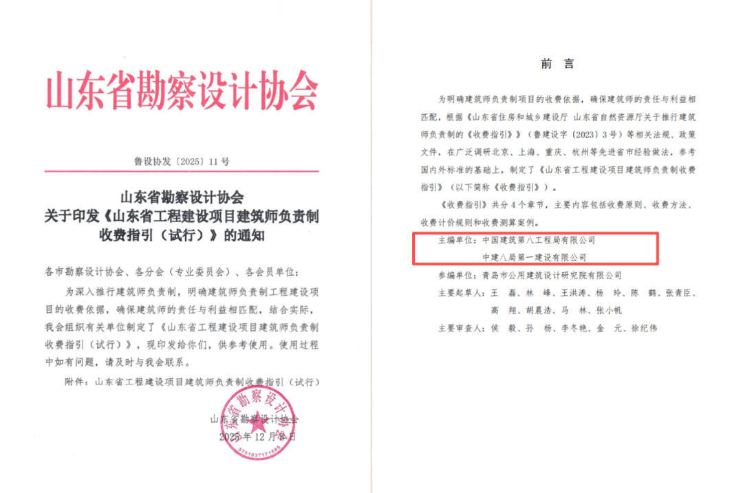 近日,由山東省勘察設(shè)計協(xié)會印發(fā)、中建八局與中建八局一公司主編的《山東省工程建設(shè)項目建筑師負(fù)責(zé)制收費指引(試行)》正式發(fā)布,為市場定價與合同簽訂提供明確依據(jù),助力工程建設(shè)組織模式改革與建筑行業(yè)轉(zhuǎn)型升級。