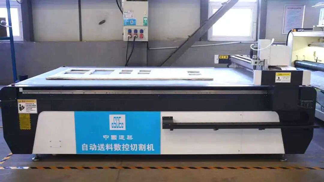 隨后,利用自動(dòng)送料數(shù)控切割機(jī)將縫制完成的氣凝膠氈精準(zhǔn)裁切后,與鋁單板通過專用粘結(jié)劑粘接,完成初步復(fù)合定位。
