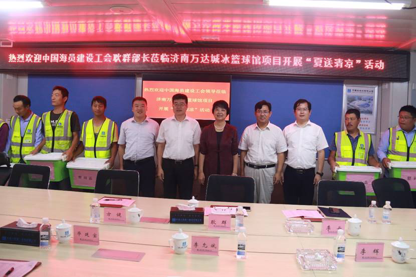 中國海員建設工會建筑工作部部長耿群蒞臨濟南萬達城冰籃館項目開展工會工作調研暨“夏送清涼”活動