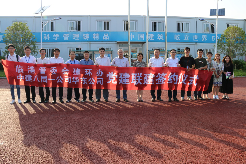 8月10日下午,上海臨港地區(qū)開發(fā)建設(shè)管理委員會(huì)建設(shè)和環(huán)境保護(hù)辦公室黨支部同公司華東公司黨總支在局重點(diǎn)工程港城廣場項(xiàng)目部舉行了黨建聯(lián)建簽約儀式,此次活動(dòng)是中建八局在臨港地區(qū)首次與管委會(huì)建環(huán)辦舉行的黨建聯(lián)建活動(dòng)。