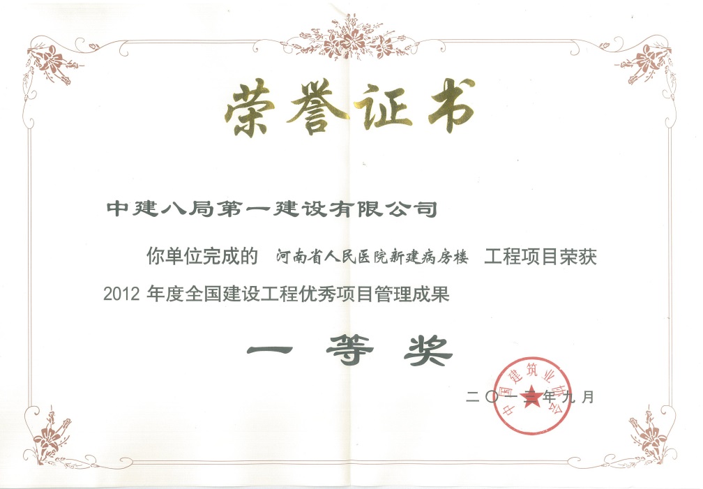 河南省人民醫(yī)院新建病房樓項(xiàng)目榮獲“全國建設(shè)工程優(yōu)秀項(xiàng)目管理成果”一等獎(jiǎng)