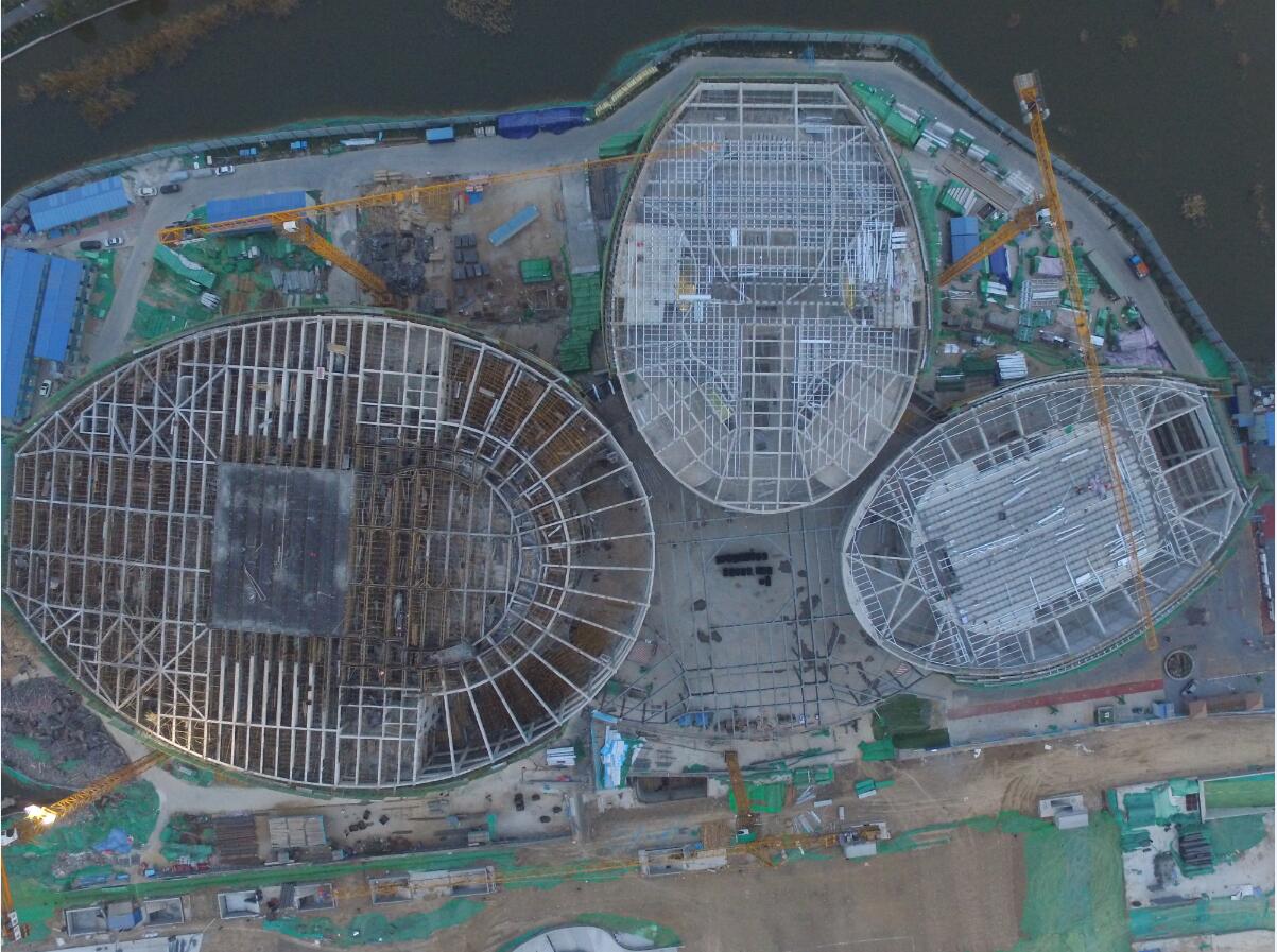 據(jù)悉,淄博市文化中心A組團(tuán)位于山東省淄博新城區(qū)核心區(qū)中部,總建筑面積為63092?,地上六層,地下一層,劃分為歌劇院、影院、音樂廳及入口大廳四個(gè)功能區(qū)。淄博市文化中心項(xiàng)目是淄博市唯一的一座大劇院項(xiàng)目,也是一公司承接的第一個(gè)大劇院工程。大劇院造型新穎、結(jié)構(gòu)復(fù)雜,高支模區(qū)域多(高支模區(qū)域共32處、最高支撐高度為49.5m),梁跨度及截面尺寸大(最大跨度為33.5m、最大截面尺寸為700mm*3100mm),周圈框架柱均為大角度傾斜圓柱(最大傾斜角度為63.33°),異形傾斜花架梁多(數(shù)量多達(dá)171根),項(xiàng)目部克服種種技術(shù)及施工難題,如期完成主體結(jié)構(gòu)封頂。(撰稿人:劉亮)