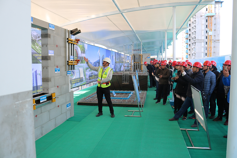觀摩團(tuán)一行首先在項(xiàng)目會(huì)議室聽取了項(xiàng)目關(guān)于“新技術(shù)應(yīng)用、質(zhì)量常見問題的亮點(diǎn)做法、BIM應(yīng)用于智慧建造、揚(yáng)塵治理措施”等介紹。隨后,觀摩團(tuán)在項(xiàng)目經(jīng)理張志剛的引導(dǎo)下,先后參觀了海綿城市、透視混凝土地面、鋼板道路、風(fēng)光互補(bǔ)太陽能路燈、新技術(shù)應(yīng)用樣板展示區(qū)、各分項(xiàng)工程亮點(diǎn)做法展示區(qū)、智慧建造體驗(yàn)館、工序樣板層和交房樣板層、安全體驗(yàn)區(qū)。截至26日下午17時(shí),項(xiàng)目當(dāng)天已累計(jì)接待觀摩人員2125人,預(yù)計(jì)27日觀摩人數(shù)將達(dá)到3000余人。