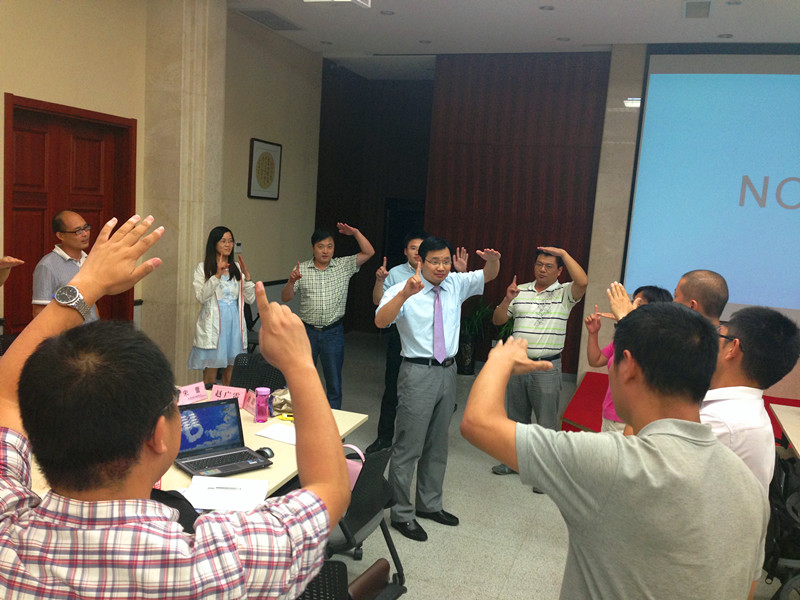 本次培訓(xùn)以《TTT培訓(xùn)》為題,培訓(xùn)師張書豪博士從培訓(xùn)師角色、課程的設(shè)計(jì)與開發(fā)、如何開場和收場、如何提高表達(dá)和控場能力等方面展開,為學(xué)員們深入講解了一名合格培訓(xùn)師應(yīng)該具備的培訓(xùn)技巧。為了活躍氣氛,讓學(xué)員們都參與進(jìn)來,張博士除了采用小組討論、團(tuán)隊(duì)互動(dòng)、情景模擬、上臺演講演練并當(dāng)場點(diǎn)評等方式之外,還帶領(lǐng)學(xué)員進(jìn)行拓展,并讓大家在輕松愉悅的氛圍中增進(jìn)交流、加強(qiáng)了解,深刻體會到團(tuán)隊(duì)合作和資源共享的重要性。他幽默風(fēng)趣的演講給學(xué)員們留下了深刻的印象。