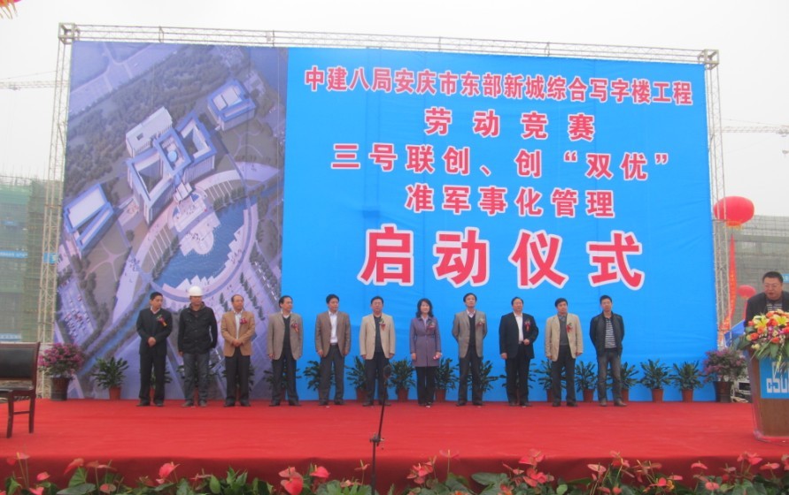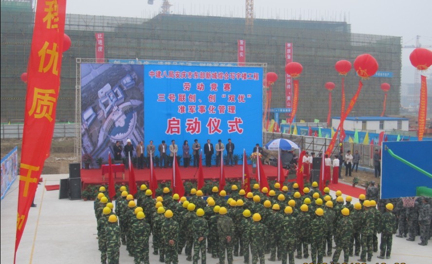安慶市東部新城綜合寫字樓工程舉行勞動(dòng)競(jìng)賽、“三號(hào)聯(lián)創(chuàng)”、創(chuàng)雙優(yōu)、準(zhǔn)軍事化管理啟動(dòng)儀式