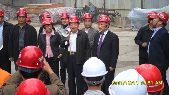 2011年10月11日,河南省人大常委會副主任、河南省總工會主席劉新民主席一行蒞臨河南省職工醫(yī)院病房樓項目,并為工人帶來了豬肉、油、米、面等慰問品。