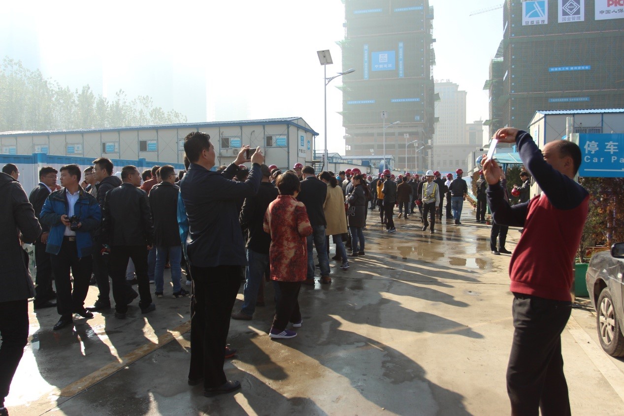 11月5日,與會(huì)各施工企業(yè)代表共赴此次交流會(huì)唯一指定觀摩工地――安徽分公司中國人保財(cái)險(xiǎn)華東中心一期工程,觀摩項(xiàng)目綠色施工典型做法。光伏發(fā)電、空氣能熱水器、太陽能路燈、雨水收集系統(tǒng)、循環(huán)水車輛沖洗系統(tǒng)、智能化環(huán)境監(jiān)測(cè)系統(tǒng)、裝配式圍擋等十幾項(xiàng)綠色施工的先進(jìn)工藝、技術(shù)引起了觀摩團(tuán)的極大興趣,大家一邊觀看,一邊舉起手機(jī)拍照,詳細(xì)記錄項(xiàng)目的先進(jìn)經(jīng)驗(yàn)、典型做法。