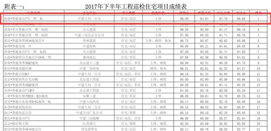 近日,公司濟(jì)南魯能泰山7號項(xiàng)目在魯能集團(tuán)2017年下半年全國工程巡檢中,從42個(gè)受檢項(xiàng)目中脫穎而出,實(shí)測實(shí)量成績獲得98.5分,質(zhì)量風(fēng)險(xiǎn)獲得94.84分,安全文明風(fēng)險(xiǎn)獲得94.76分,綜合成績?yōu)?span>96.65分,勇奪第一名。