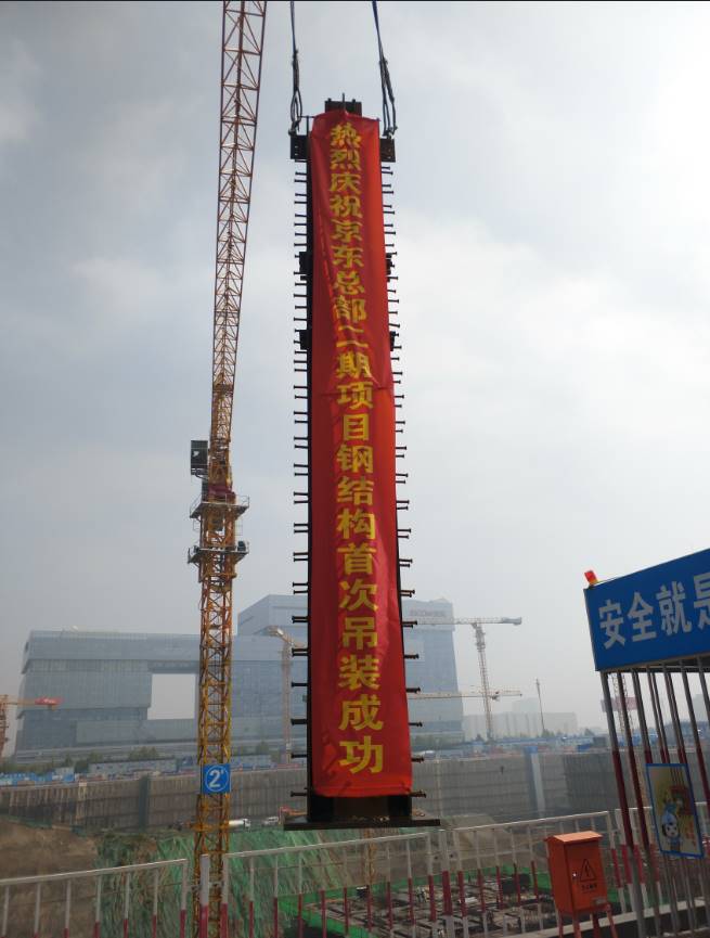 京東集團總部二期項目完成鋼結(jié)構(gòu)首吊