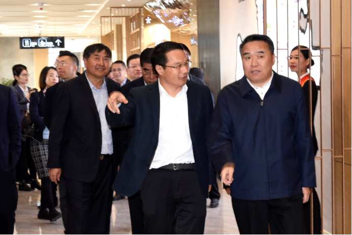 董文祥向山東高速集團黨委書記、董事長鄒慶忠介紹安丘服務(wù)區(qū)情況