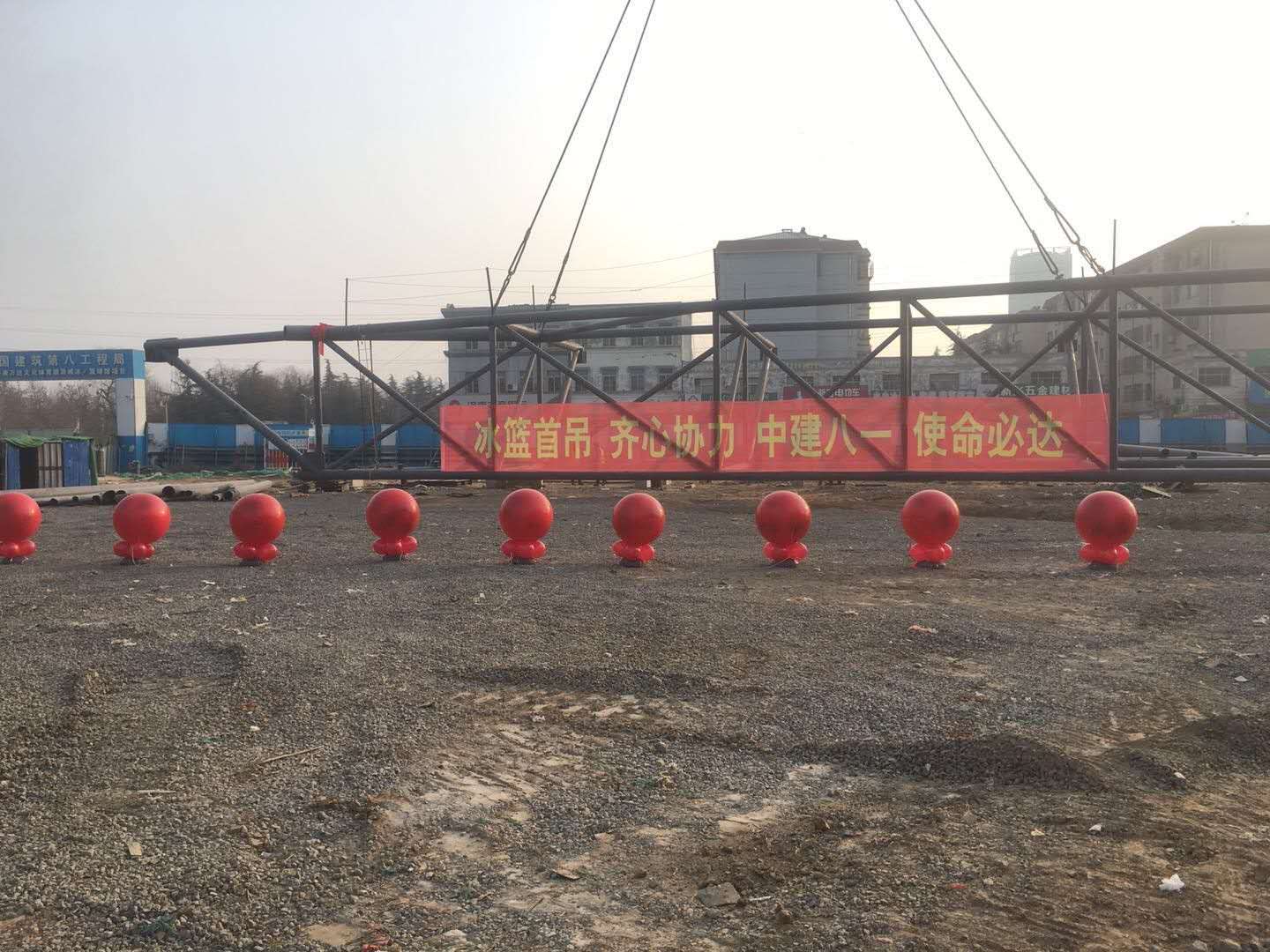 公司承建萬達(dá)冰籃球館項(xiàng)目順利完成新年“第一吊”