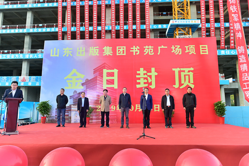 山東出版集團(tuán)圖書展示樓項(xiàng)目喜迎封頂