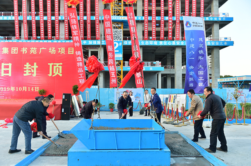 10月14日,一公司山東出版集團(tuán)圖書展示樓項(xiàng)目喜迎封頂。山東新源文化置業(yè)有限公司董事長(zhǎng)李濤、總經(jīng)理孫明,濟(jì)南建設(shè)監(jiān)理有限公司董事長(zhǎng)林峯,山東意匠建筑設(shè)計(jì)有限公司副院長(zhǎng)劉祥春,一公司黨委書記、董事長(zhǎng)董文祥,濟(jì)南公司總經(jīng)理霍文濤共同出席了封頂儀式。