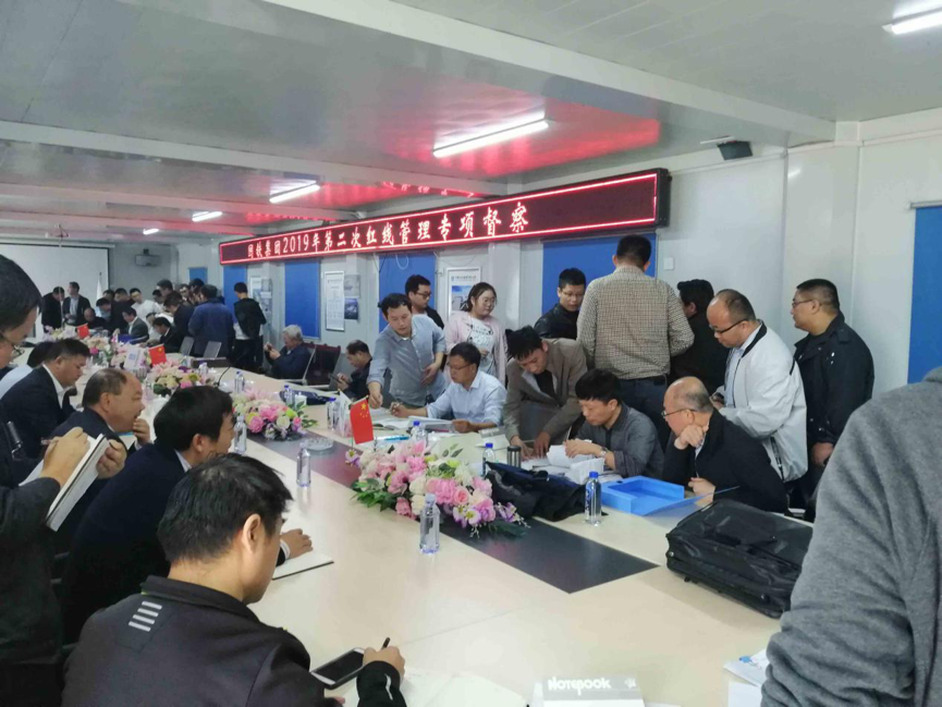 10月31日,以李衛(wèi)平為組長(zhǎng),林宇、范海波等為成員的中國(guó)國(guó)家鐵路集團(tuán)有限公司紅線督查組,到公司魯南高鐵站房項(xiàng)目開(kāi)展2019 年質(zhì)量安全紅線管理第二次專項(xiàng)督查。魯南高速鐵路有限公司總經(jīng)理孫韶峰、中建八局山東分局副局長(zhǎng)宋疆增、中建八局基礎(chǔ)設(shè)施部高級(jí)經(jīng)理許良全、公司副總經(jīng)理劉明、基礎(chǔ)設(shè)施管理部經(jīng)理張傳奎以及項(xiàng)目經(jīng)理程飛等陪同檢查。