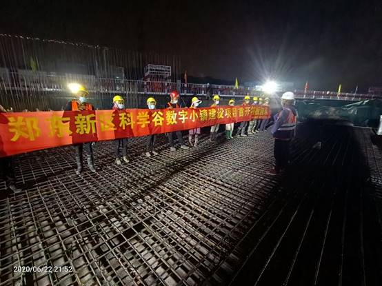 6月22日晚,鄭州市鄭東新區(qū)科學(xué)谷數(shù)字小鎮(zhèn)建設(shè)項目(一期)EPC總承包第二標(biāo)段綜合展示中心基礎(chǔ)筏板全線首開澆筑。