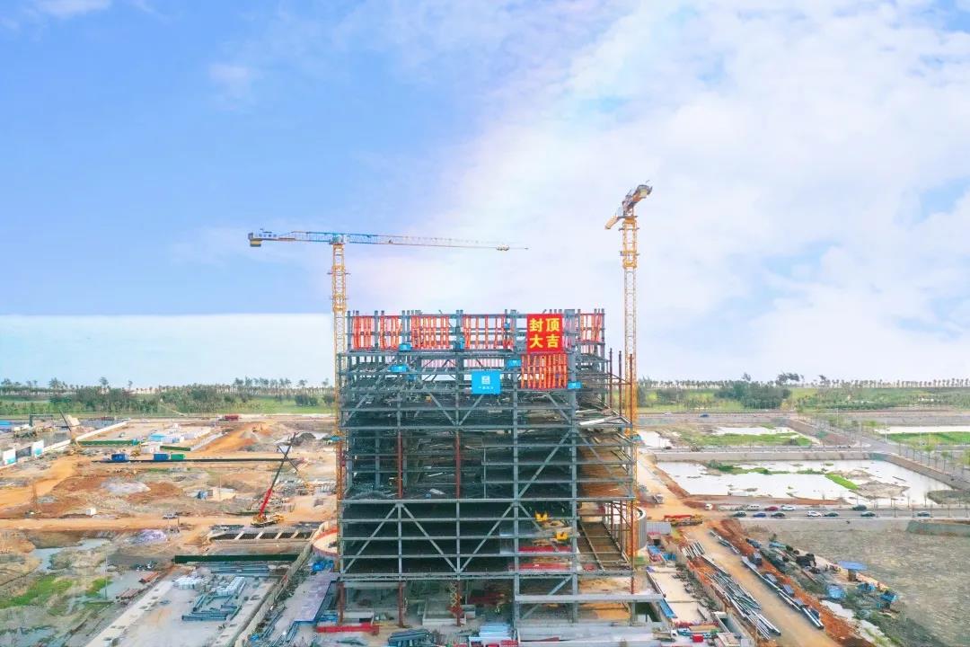 3月31日,海南江東·國際能源中心項(xiàng)目完成鋼結(jié)構(gòu)封頂,朝著完美履約目標(biāo)邁進(jìn)。