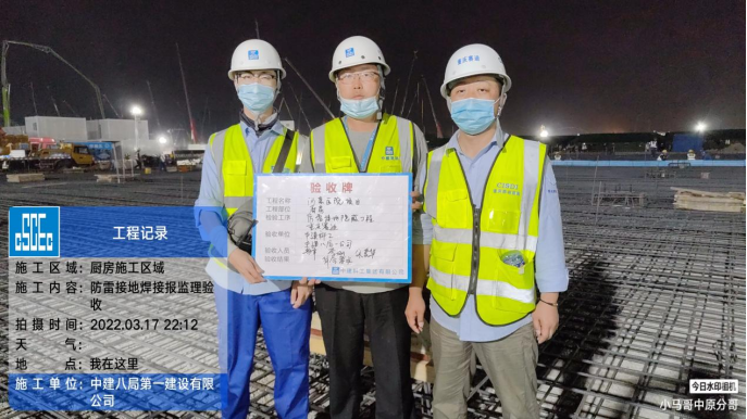 一公司負責廚房標段的機電安裝和管道鋪設工作,自從3月17日下午3點場地具備作業(yè)條件以后,項目團隊跑步進場,8名工程師、24名工人全工程穿插施工,在6小時內(nèi)完成了全場防雷接地工作,累計焊接359個點位,并與當晚10點提前通過驗收,為機電專業(yè)的后續(xù)大穿插施工奠定了良好基礎。