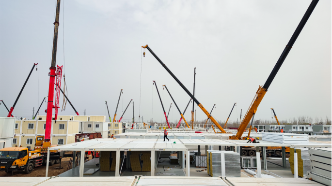 2天內(nèi)完成8838米基礎(chǔ)施工,預(yù)制排水溝安裝成功,室外排污管網(wǎng)放線完成4000米,箱房吊裝完成450間;5天內(nèi)箱房吊裝完成1150間,水電安裝完成750間;7天內(nèi)2576間箱房全部安裝完成;9天內(nèi)完成1718臺空調(diào)安裝,醫(yī)務(wù)辦公及9棟隔離公寓(500間)完成內(nèi)配及移交,具備應(yīng)急啟用條件;10天內(nèi)完成1600套集成衛(wèi)浴安裝和調(diào)試,所有房間具備隔離入住及辦公條件;3月22日完成1000米圍擋搭設(shè),2576間隔離及辦公用房移交。