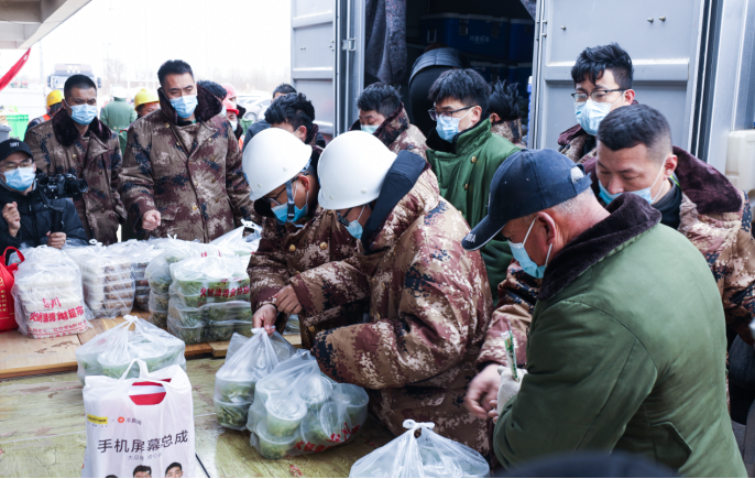 由于疫情原因,場地周邊餐館停止?fàn)I業(yè),后勤保障組積極協(xié)調(diào)周邊資源,進(jìn)場當(dāng)晚順利保障近500人的正常用餐。面對高峰時期近2500人的用餐量,5個人組成的臨時團(tuán)隊,科學(xué)優(yōu)化發(fā)放流程,20分鐘內(nèi)完成飯菜發(fā)放。
