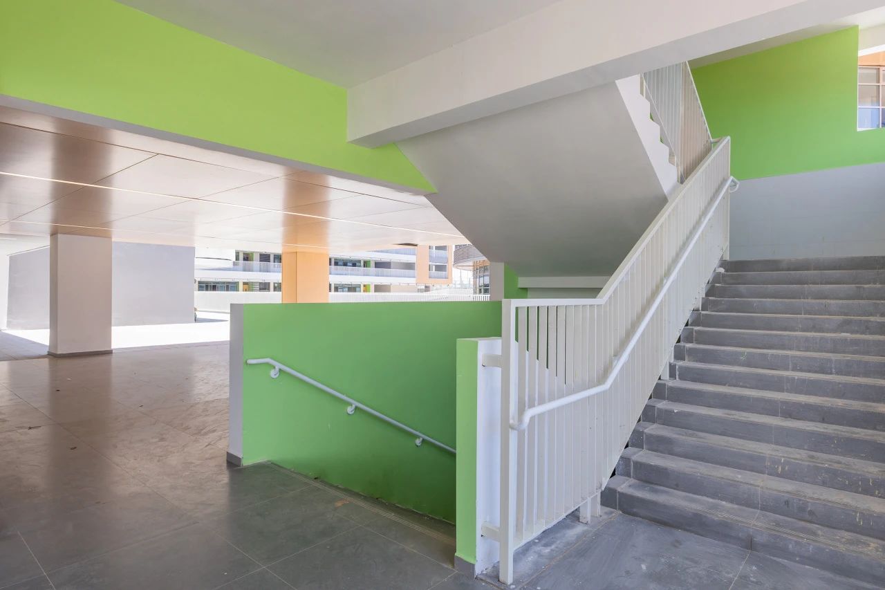 項(xiàng)目以“濱海森林”為設(shè)計(jì)概念,以“垂直群落”為設(shè)計(jì)主題,采用院落式布局教學(xué)樓裝飾色塊碰撞室內(nèi)外景色相映襯,光影交織每個角落,自成一幅風(fēng)景。