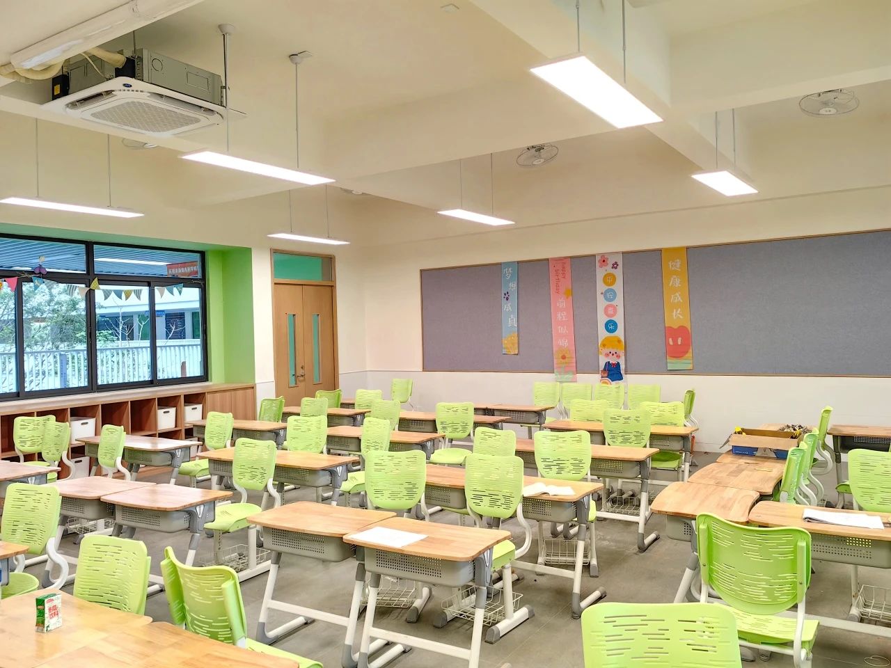 教室裝飾與建筑外觀一脈相承,現(xiàn)代化設(shè)施一應(yīng)俱全暖黃色燈光,保護(hù)視力,人體工學(xué)桌椅提供舒適體驗(yàn),每一處細(xì)節(jié)都彰顯建設(shè)品質(zhì)。