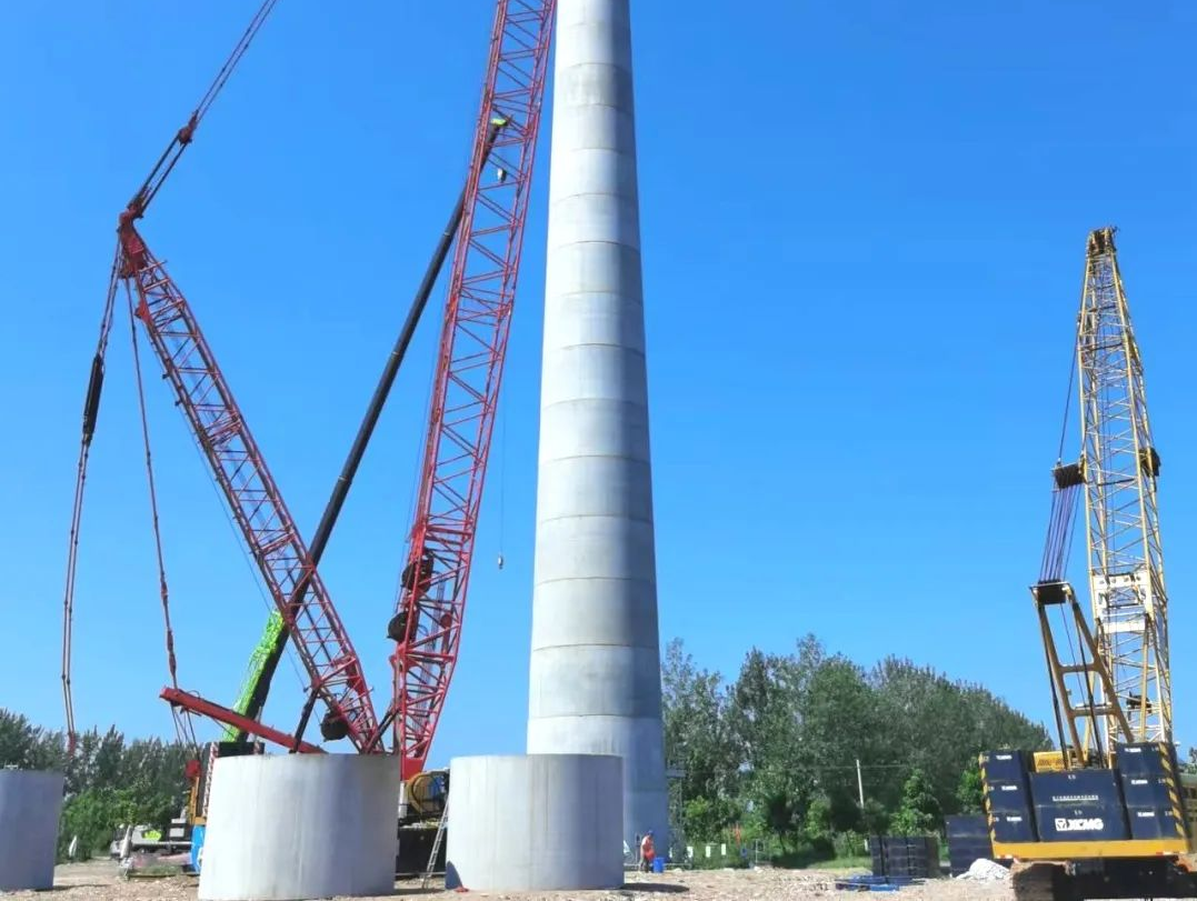 該項目為48MW分散式風(fēng)電項目的混塔管片供應(yīng),具有自重大、耐久性和穩(wěn)定性好等優(yōu)點,尤其適用于低風(fēng)速、大風(fēng)切變、運輸困難區(qū)域以及大單機容量機組。塔身混凝土塔段和鋼塔段的設(shè)計組成確保了結(jié)構(gòu)的穩(wěn)定與安全,可大幅減小頂端擺幅,提高發(fā)電量延長機組疲勞壽命,且在生產(chǎn)過程中一次澆筑成形,色澤均勻、外形美觀、節(jié)能環(huán)保能,有效縮短施工周期,是風(fēng)電行業(yè)發(fā)展的趨勢。