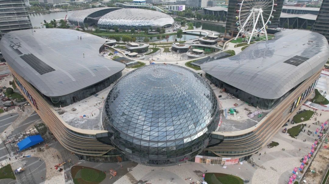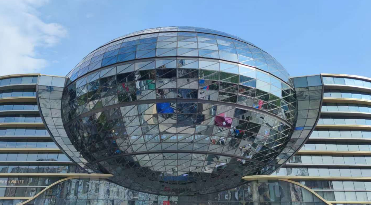 橢球造型長(zhǎng)軸68m,短軸54m,采用超大規(guī)格的玻璃板材進(jìn)行裝飾,為打造最優(yōu)裝飾效果,項(xiàng)目采用三維掃描技術(shù)精確建模,將橢球體細(xì)分為3528塊不規(guī)則三角形平板,確保每一塊玻璃都能完美貼合。