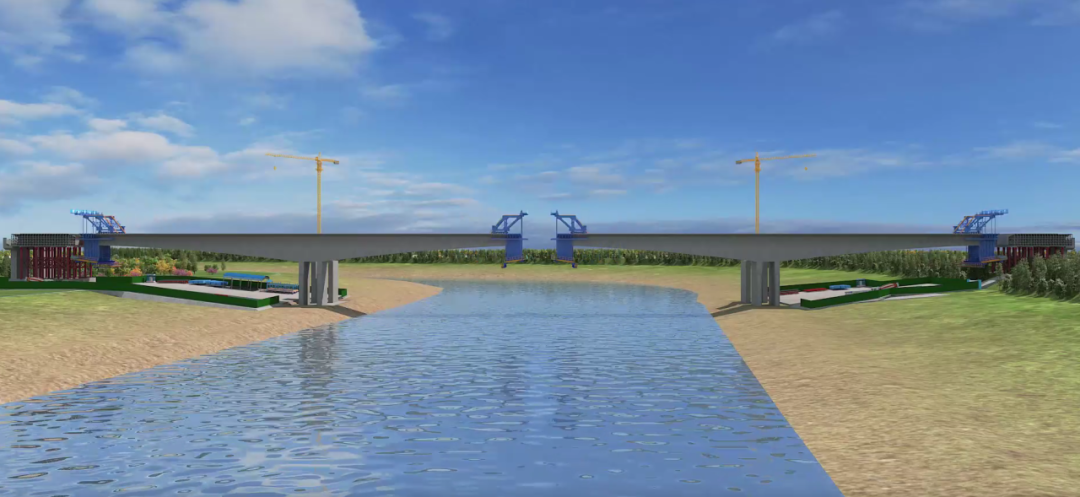 徒駭河特大橋是項(xiàng)目施工的重難點(diǎn),全長1248.5米,共9聯(lián),單幅橋?qū)?6.5米,主跨長358.5米,最大跨徑165米,主橋采用單箱單室變截面預(yù)應(yīng)力混凝土連續(xù)梁結(jié)構(gòu)形式,是徒駭河跨徑最大連續(xù)剛構(gòu)現(xiàn)澆梁。