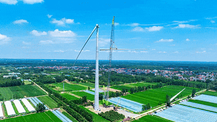 站在項目現(xiàn)場眺望,“風(fēng)車”、田野、村落相映成趣,勾勒出人與自然和諧共生的綠色畫卷。該項目預(yù)計 12 月下旬開始并網(wǎng)發(fā)電,將滿足區(qū)域 40 萬戶用電需求,為區(qū)域高質(zhì)量發(fā)展提供綠色能源保障。